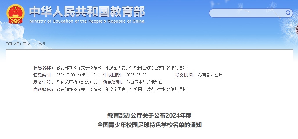 好消息!2024年度全国青少年校园足球特色学校名单公布啦!经有关学校自主申报、专家评审、省级教育行政部门审核推荐、社会公示,教育部认定并命名全国青少年校园足球特色学校5889所。